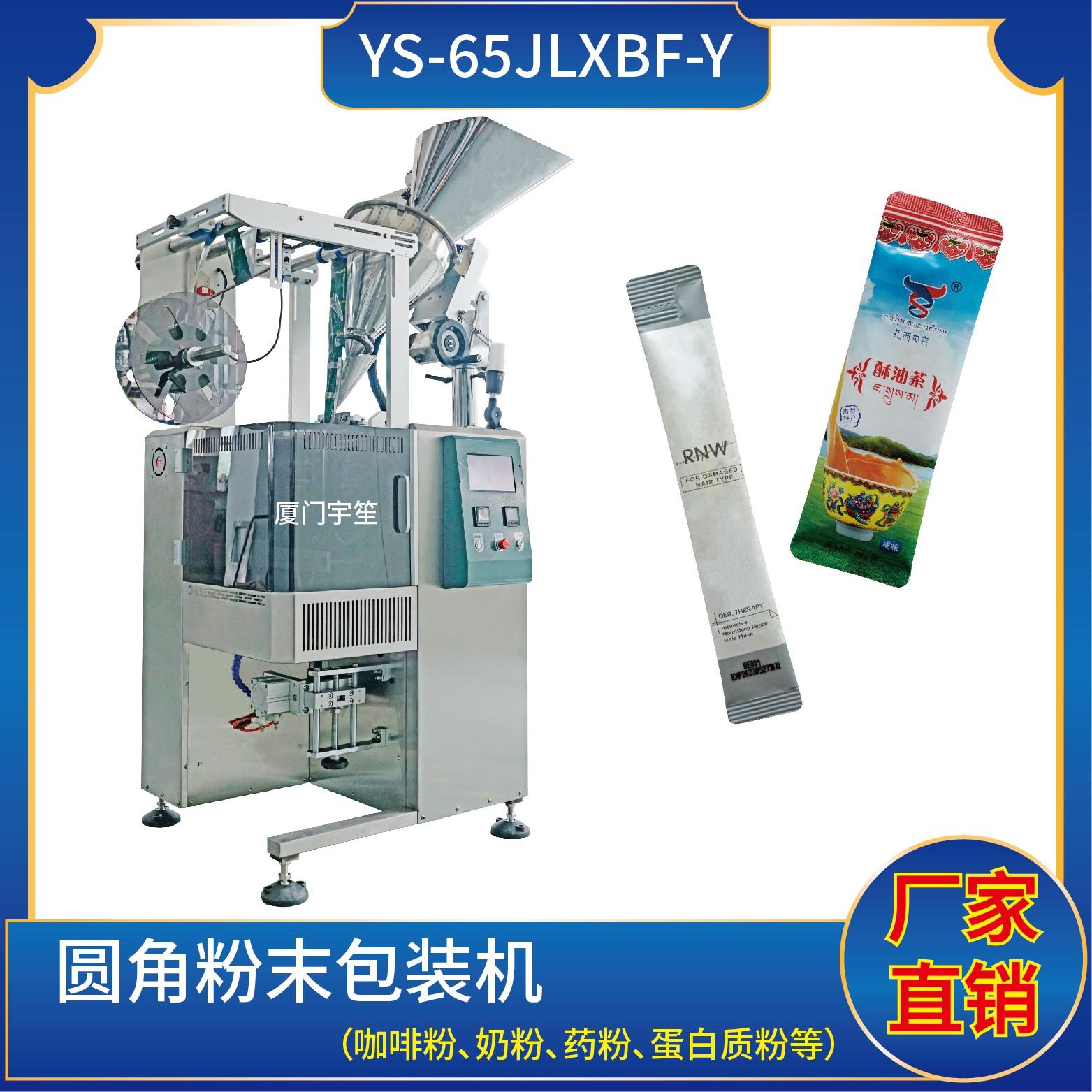 YS-65JLBXF-Y 新一代圓角粉劑包裝機(jī)特 點(diǎn) Characteristic1、適用于食品、醫(yī)藥、化工、化妝品行業(yè)中粉劑等物品的計(jì)量包裝。.The machine is suitable for the food, medicine, chemical industry, cosmetics industry of powder of measurement packing. 2、可自動(dòng)完成制袋、計(jì)量、下料、封合、分切、計(jì)數(shù)、且可根據(jù)客戶(hù)要…